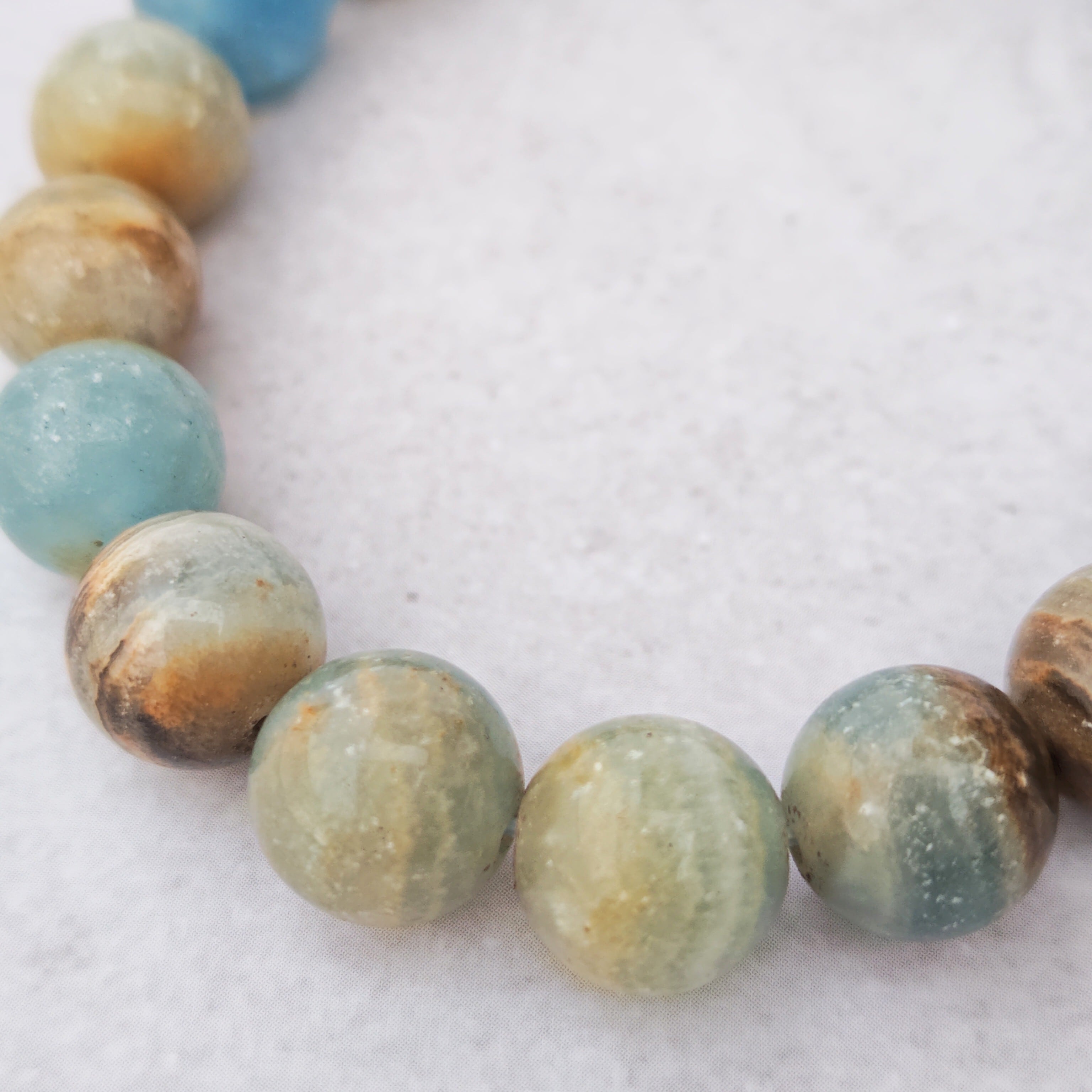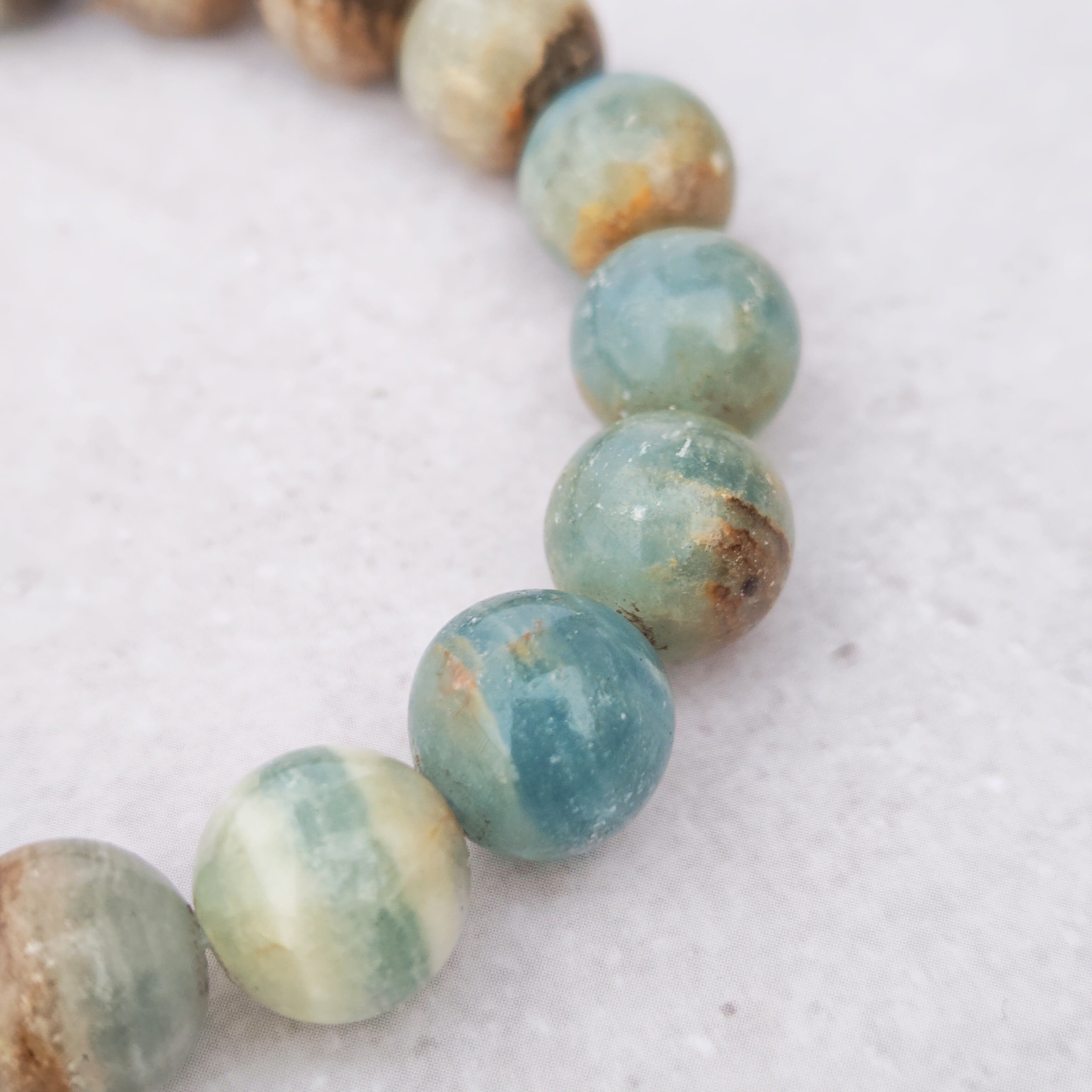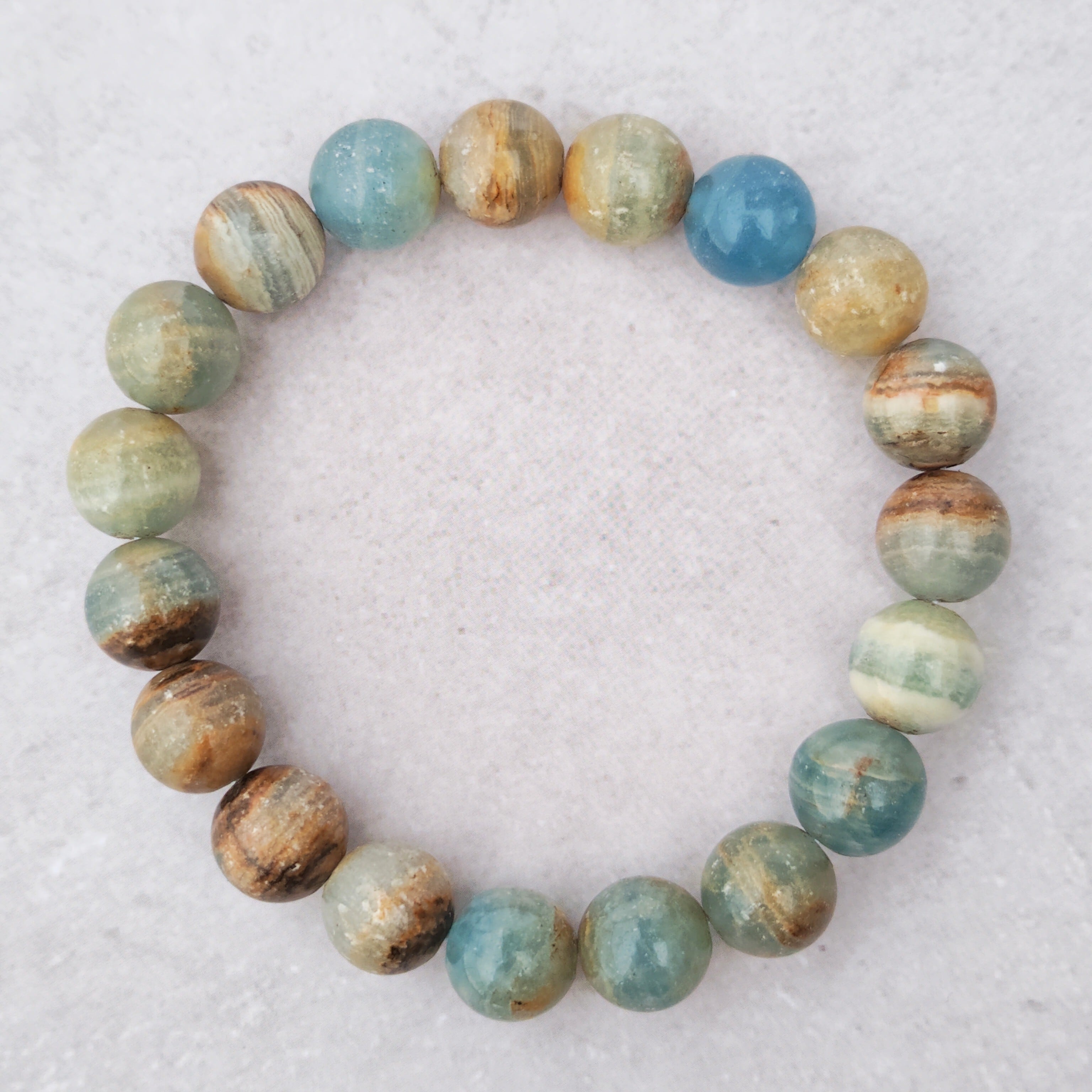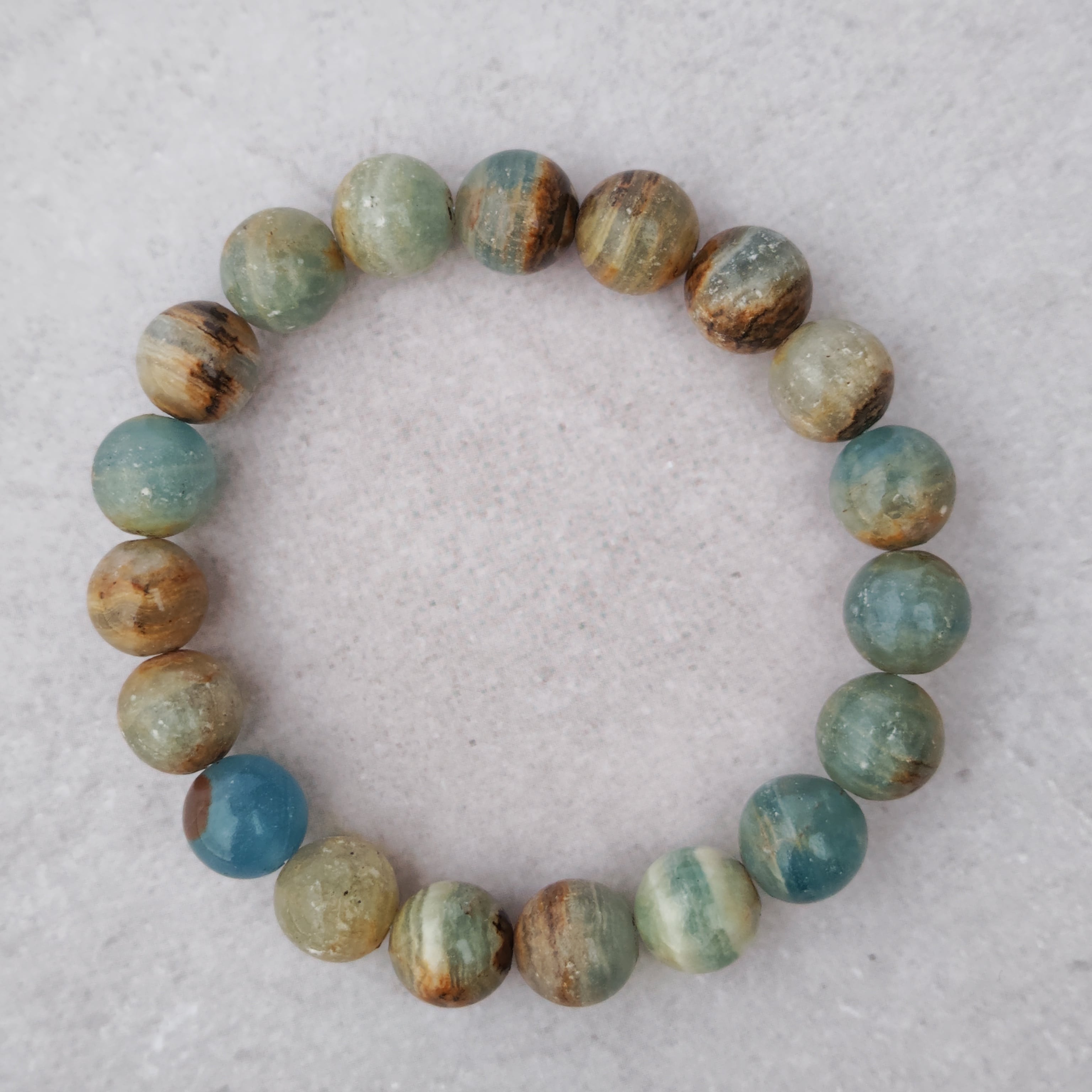 ブレスレットに仕立てられたこの石は、空を見上げたときのような深い安堵感と静けさをそっとくれる存在。