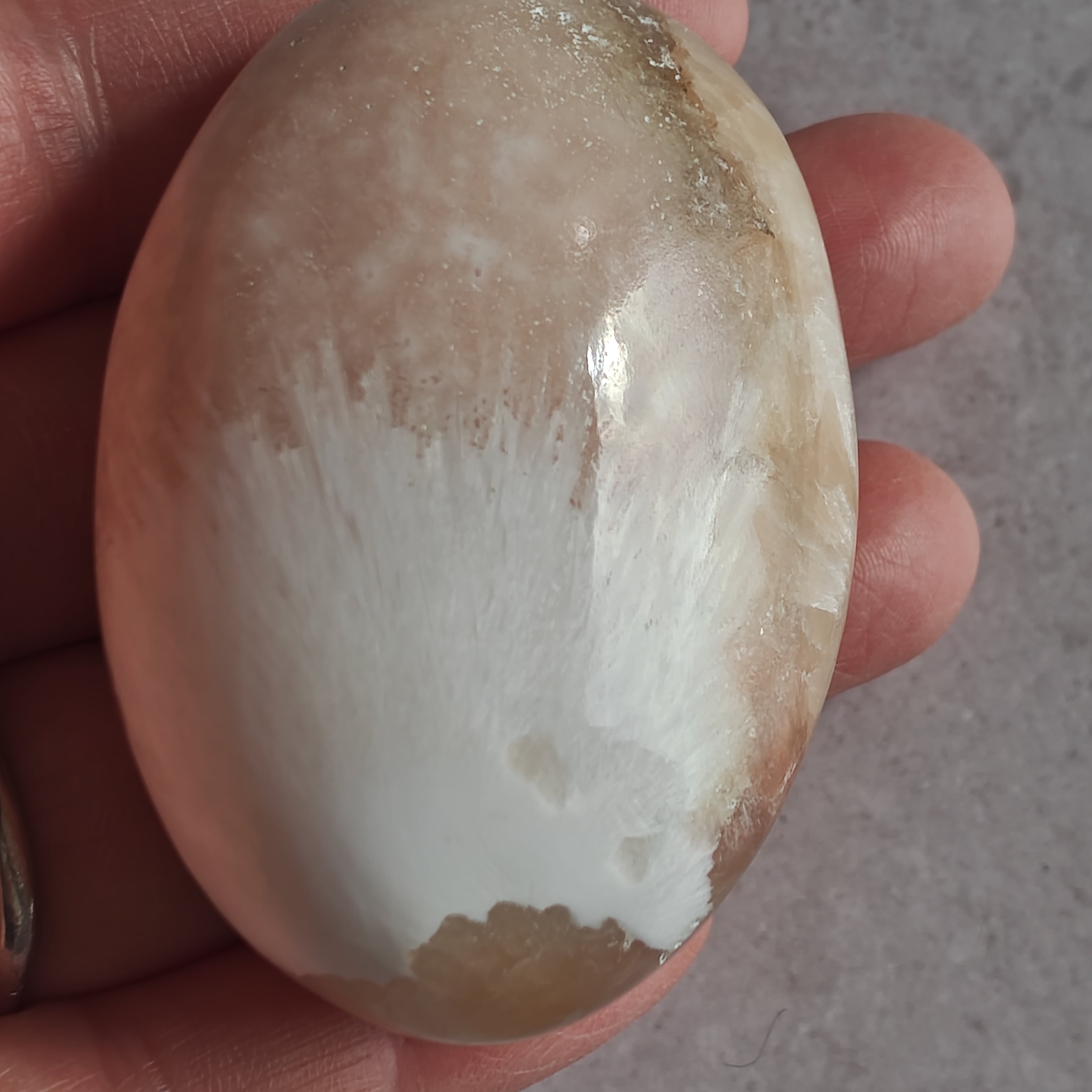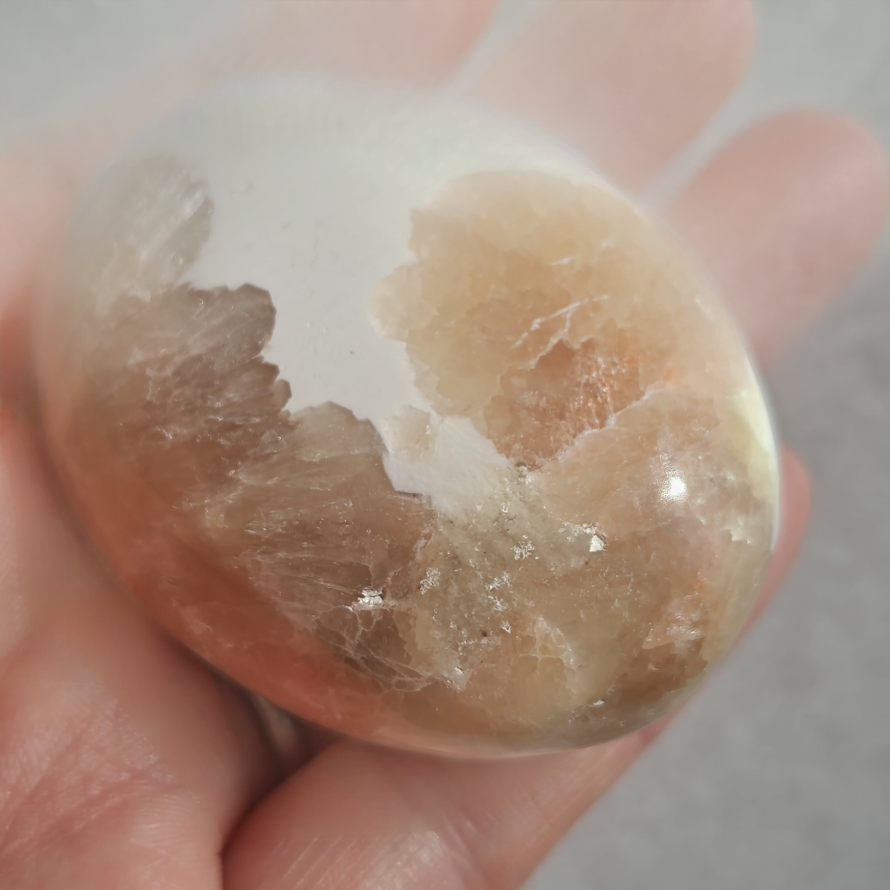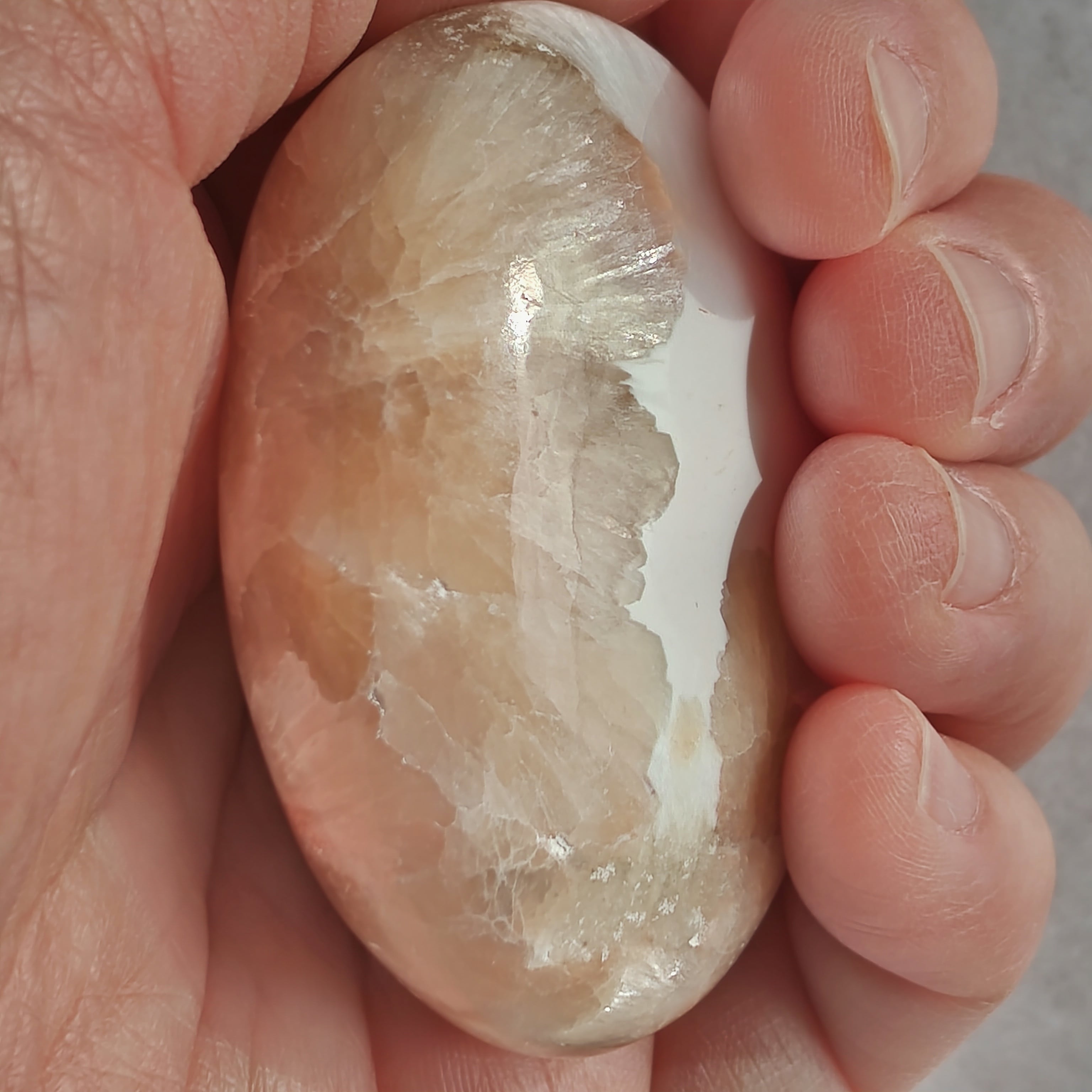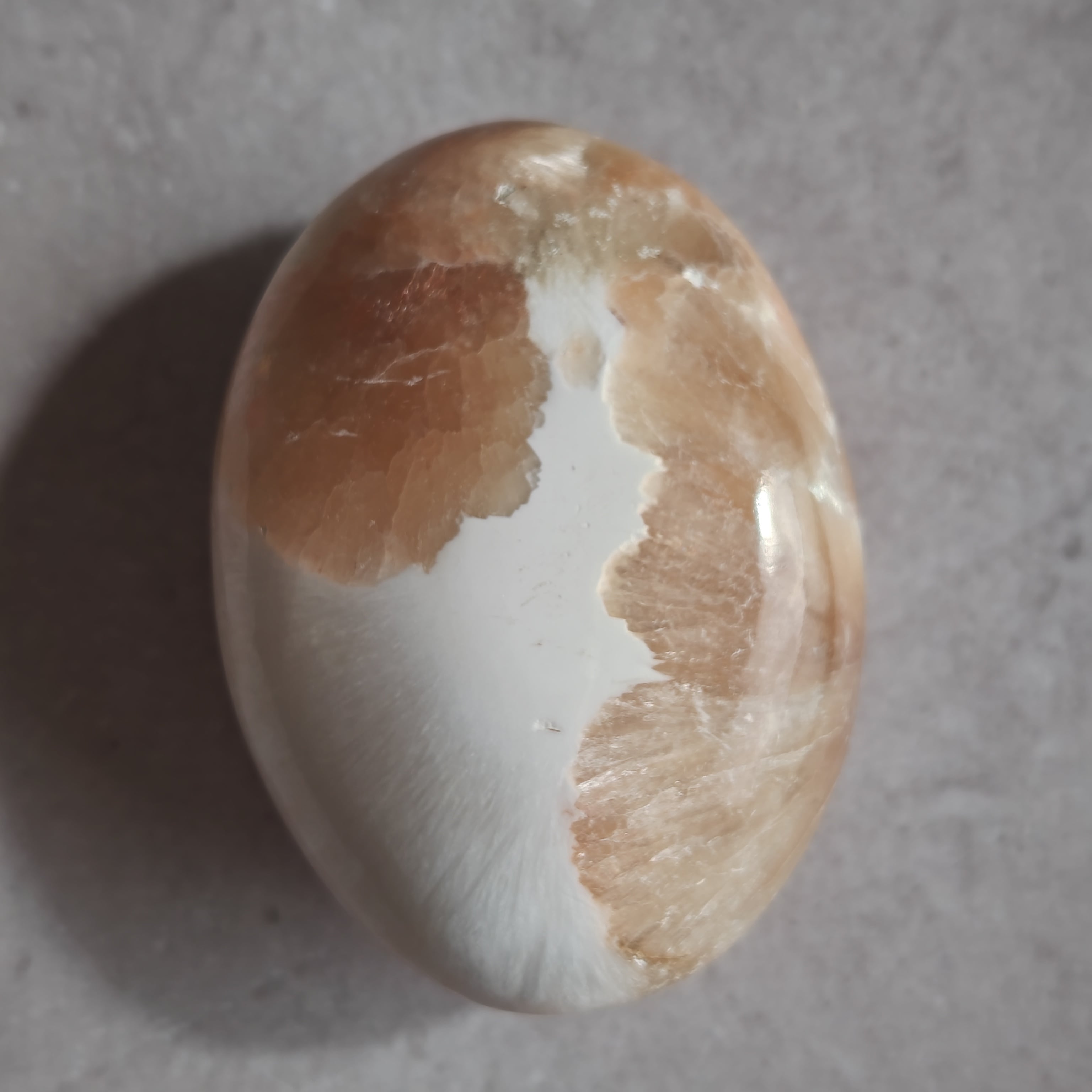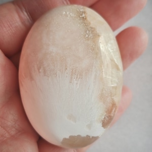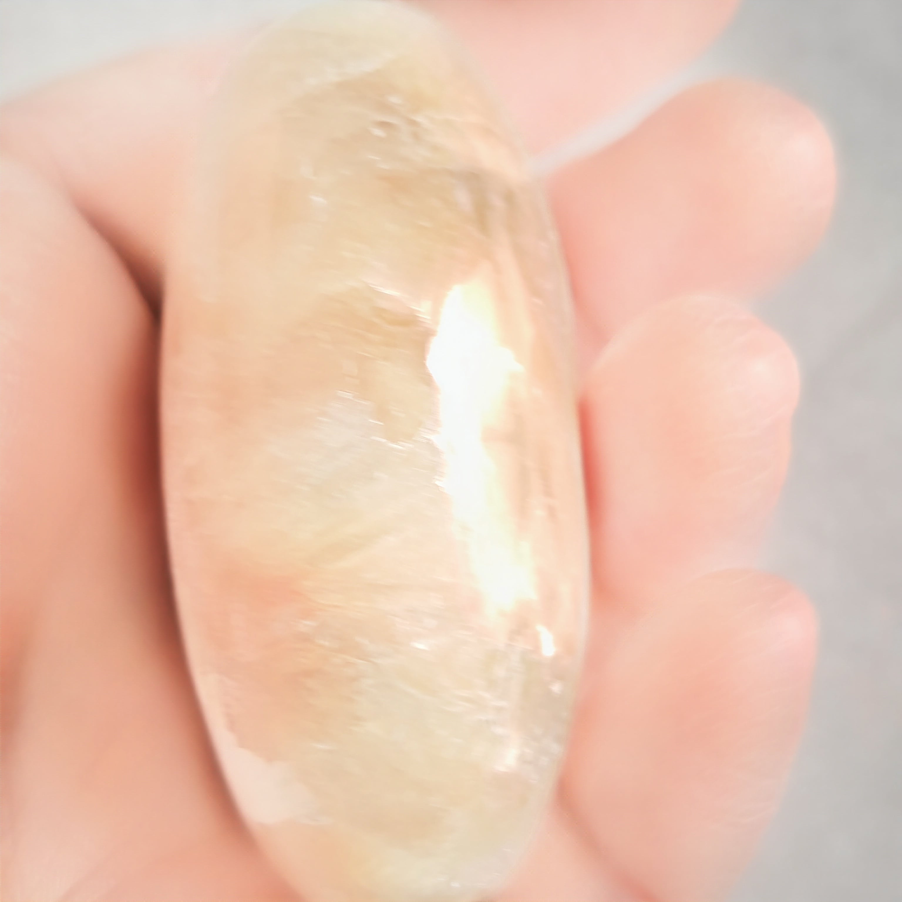やさしい色の重なりが、手のひらに触れた瞬間から心をほっと溶かしてくれるような握り石です。瞑想・就寝前・お守りに最適。