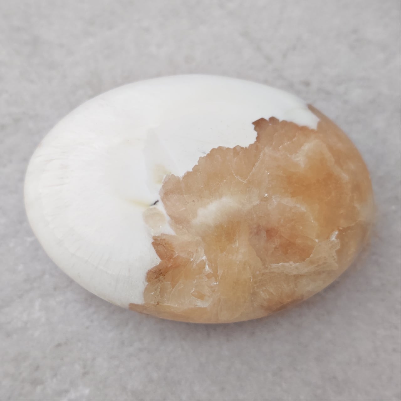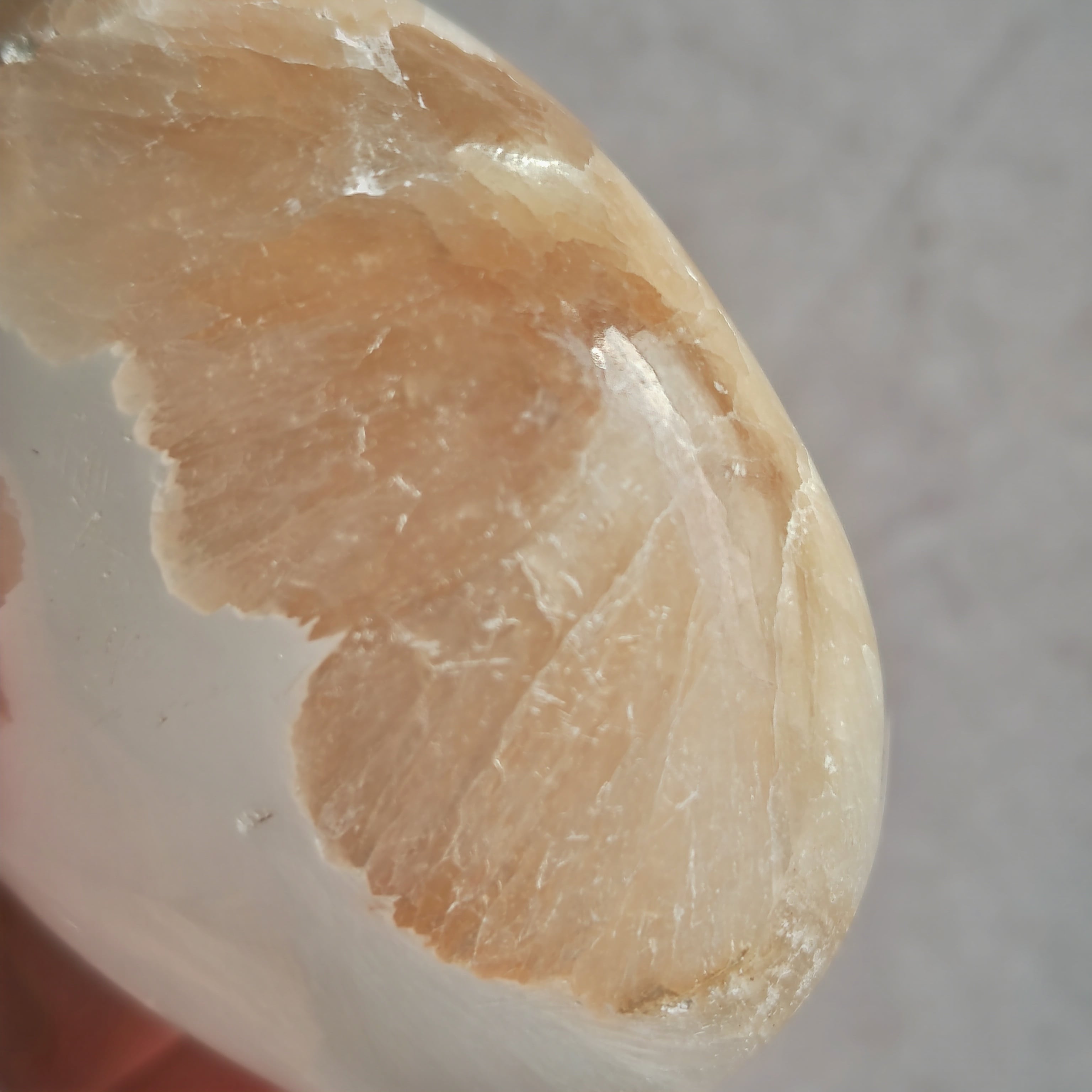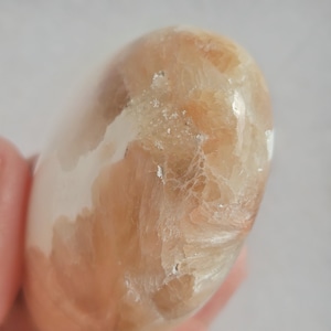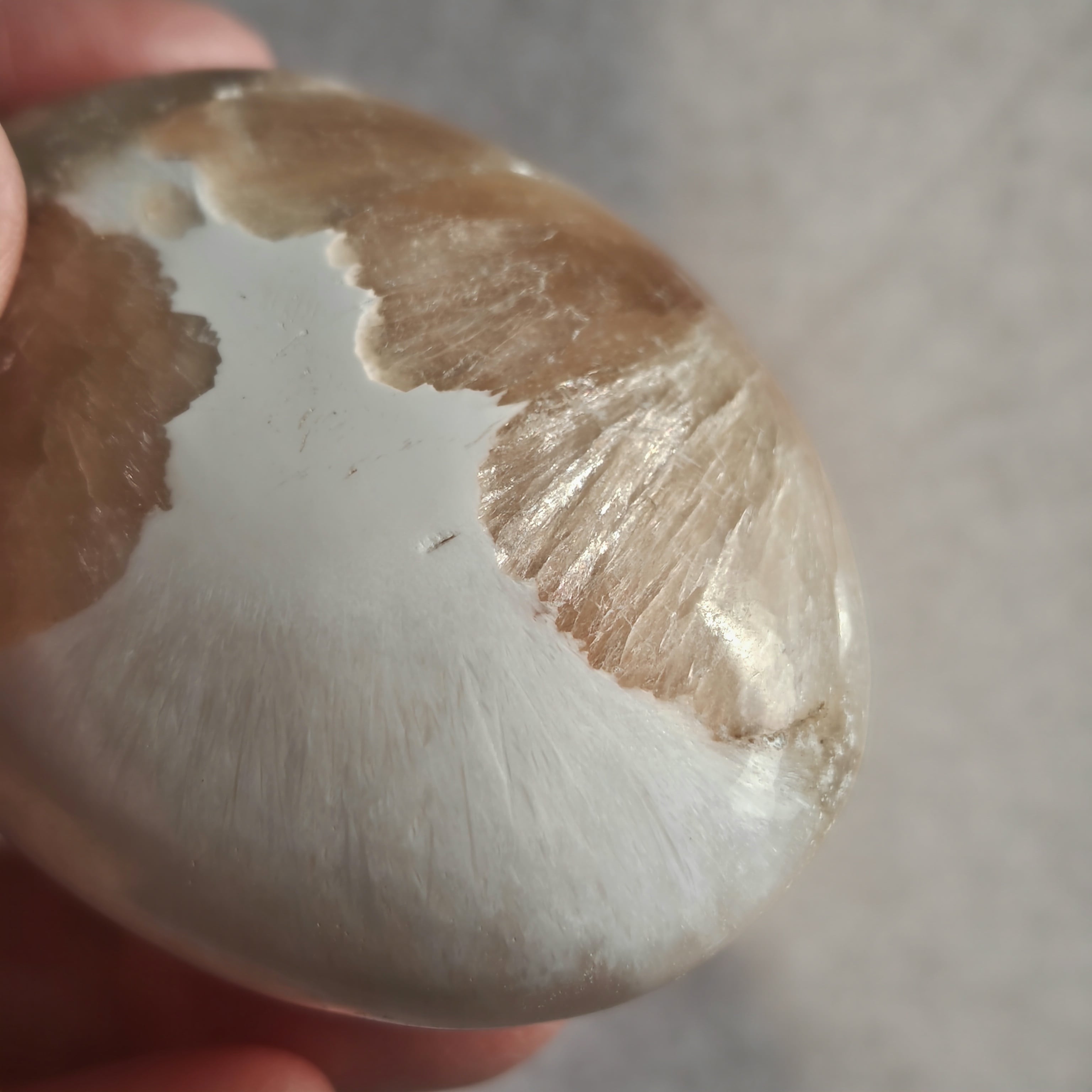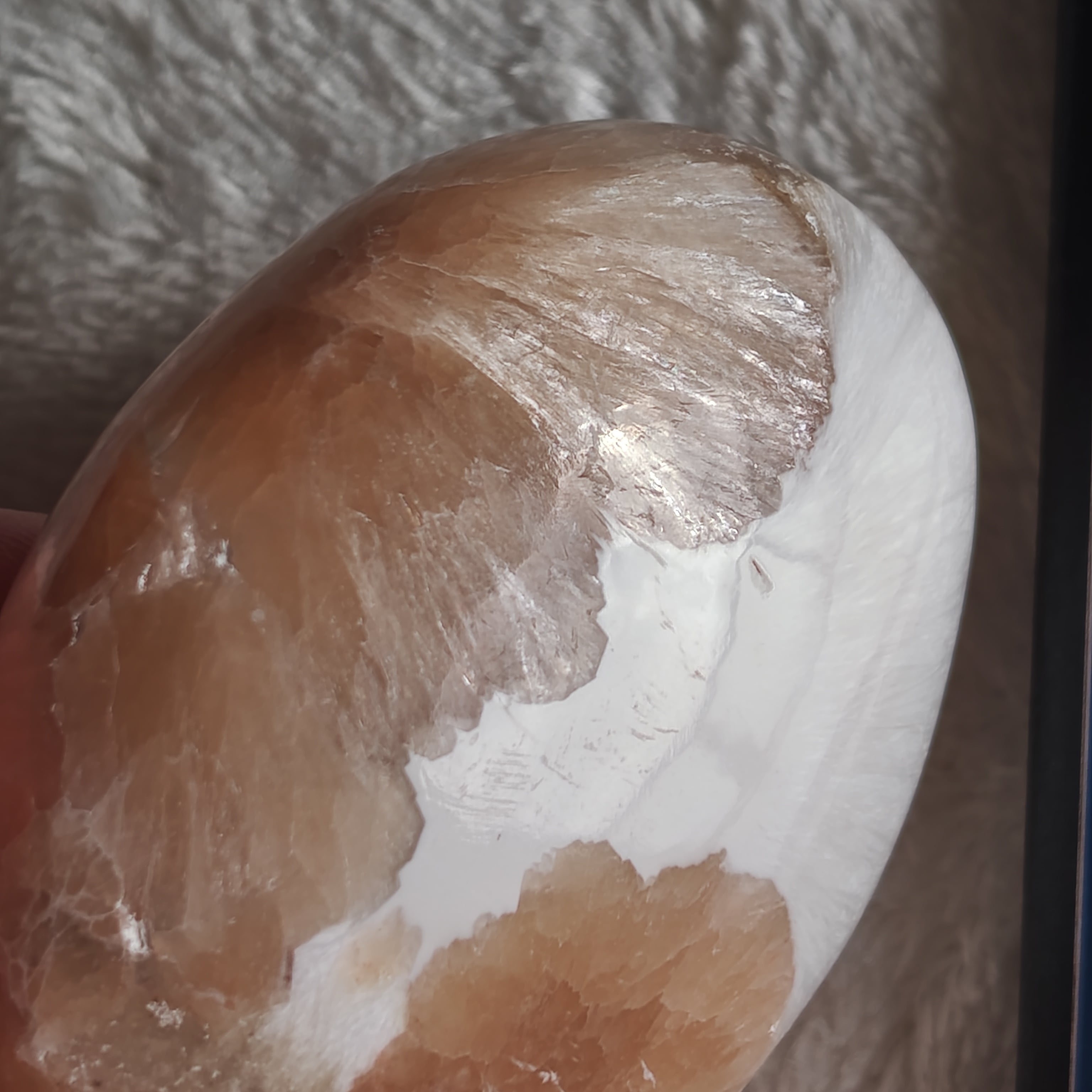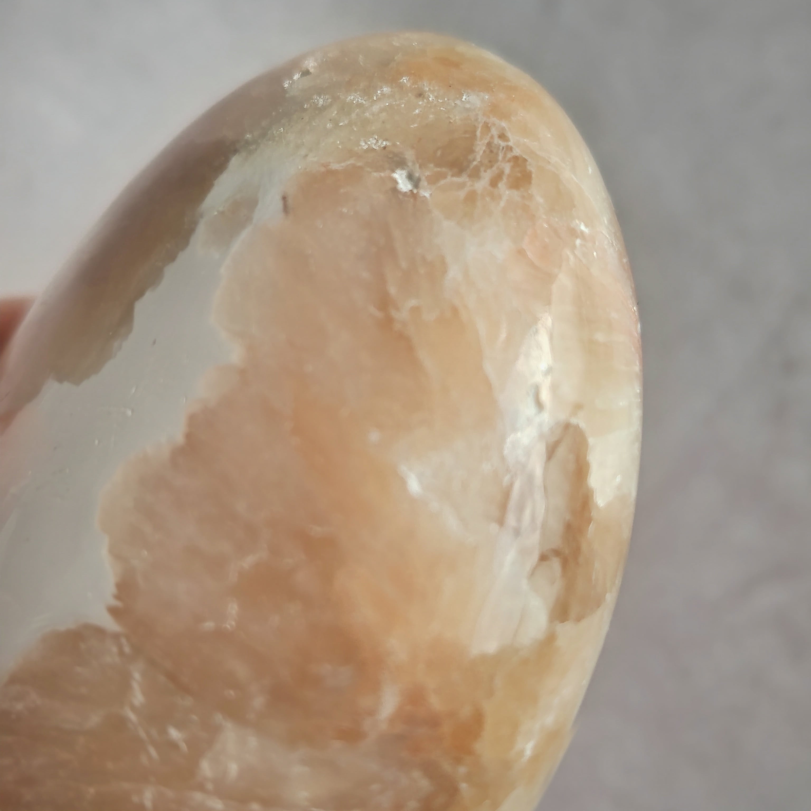 やさしい色の重なりが、手のひらに触れた瞬間から心をほっと溶かしてくれるような握り石です。瞑想・就寝前・お守りに最適。