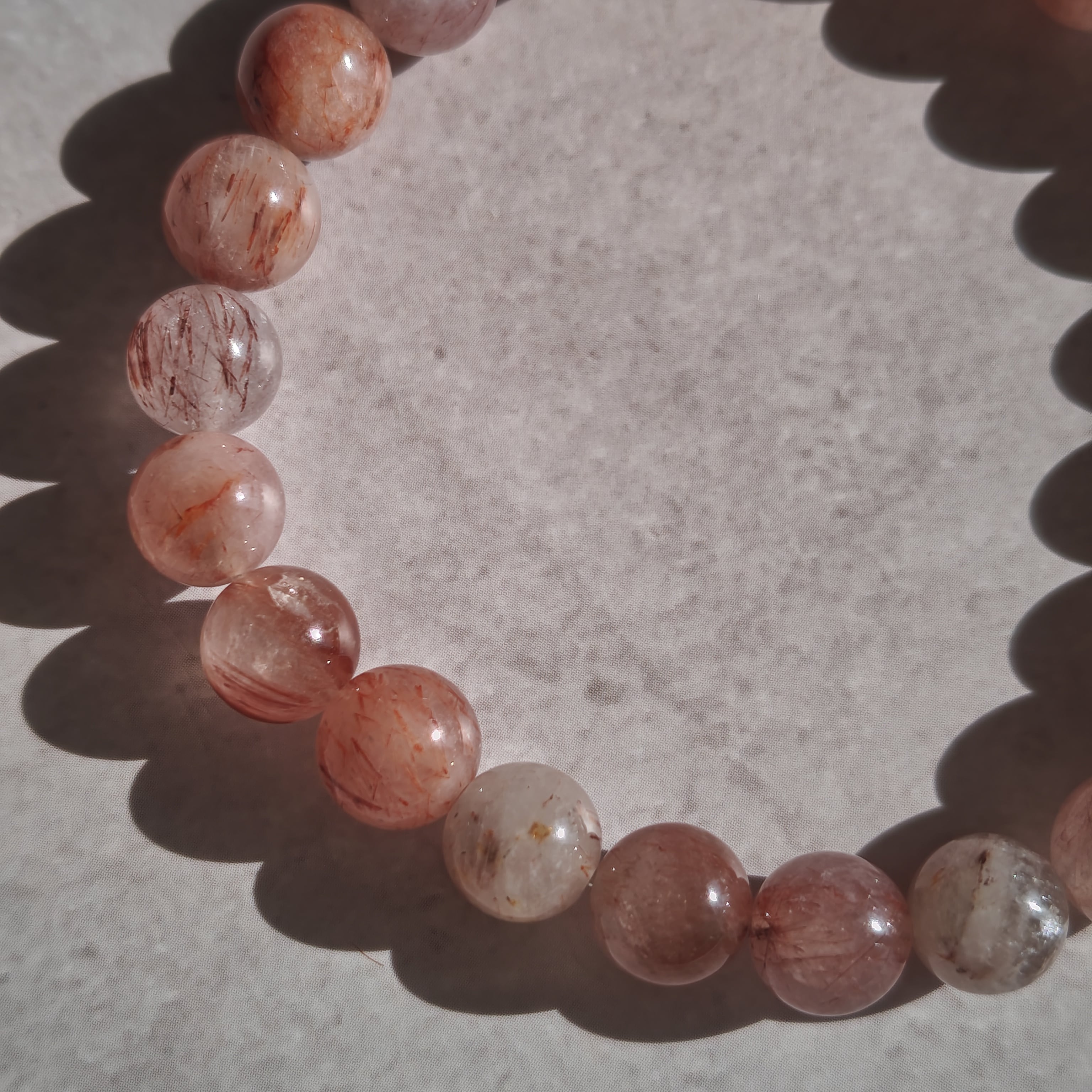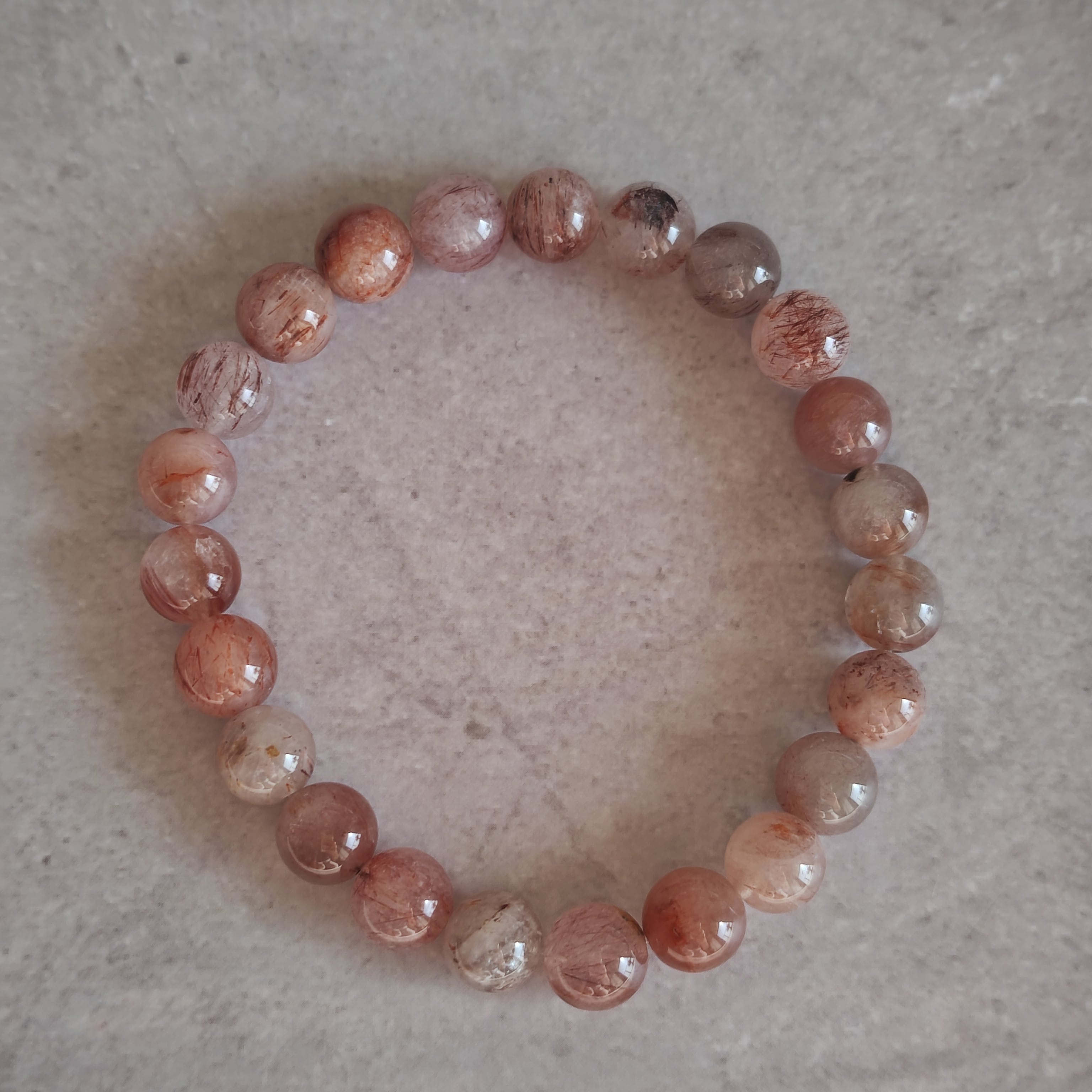 【はじめてのMamoriaシリーズ】ピンクラビットヘアルチルクォーツ ブレスレット