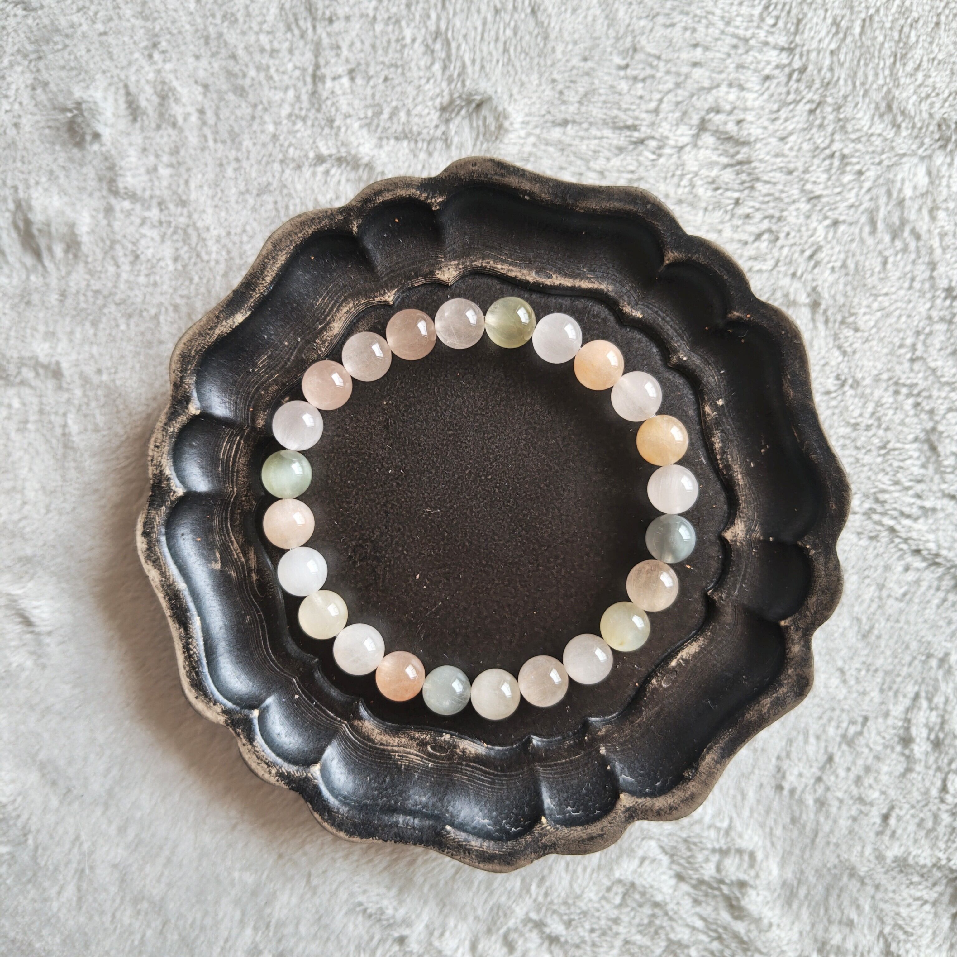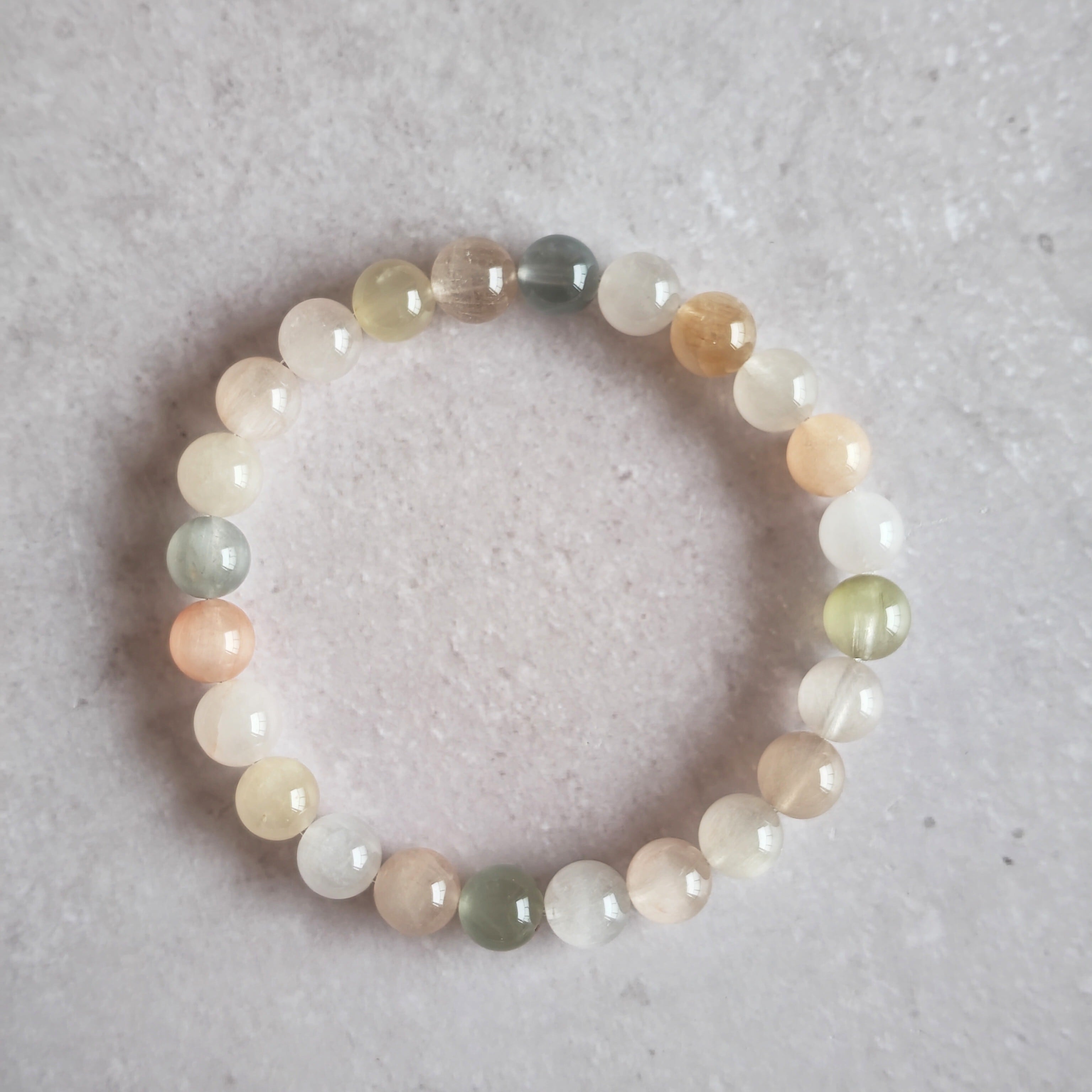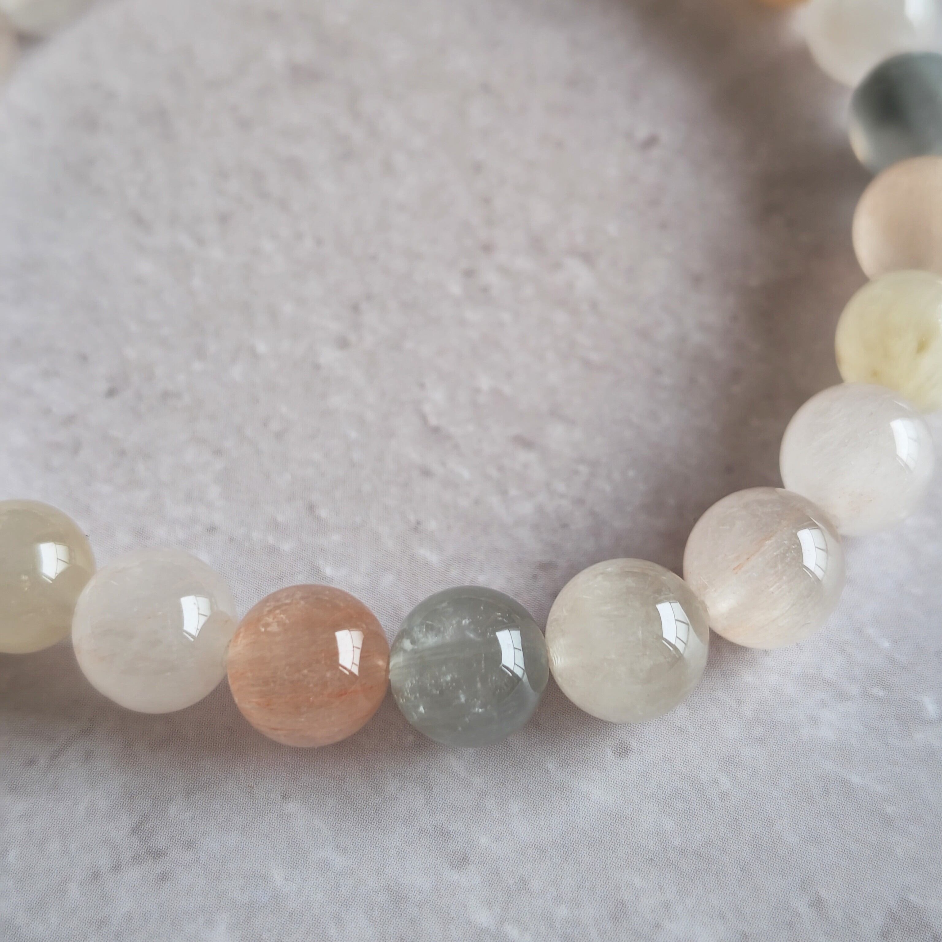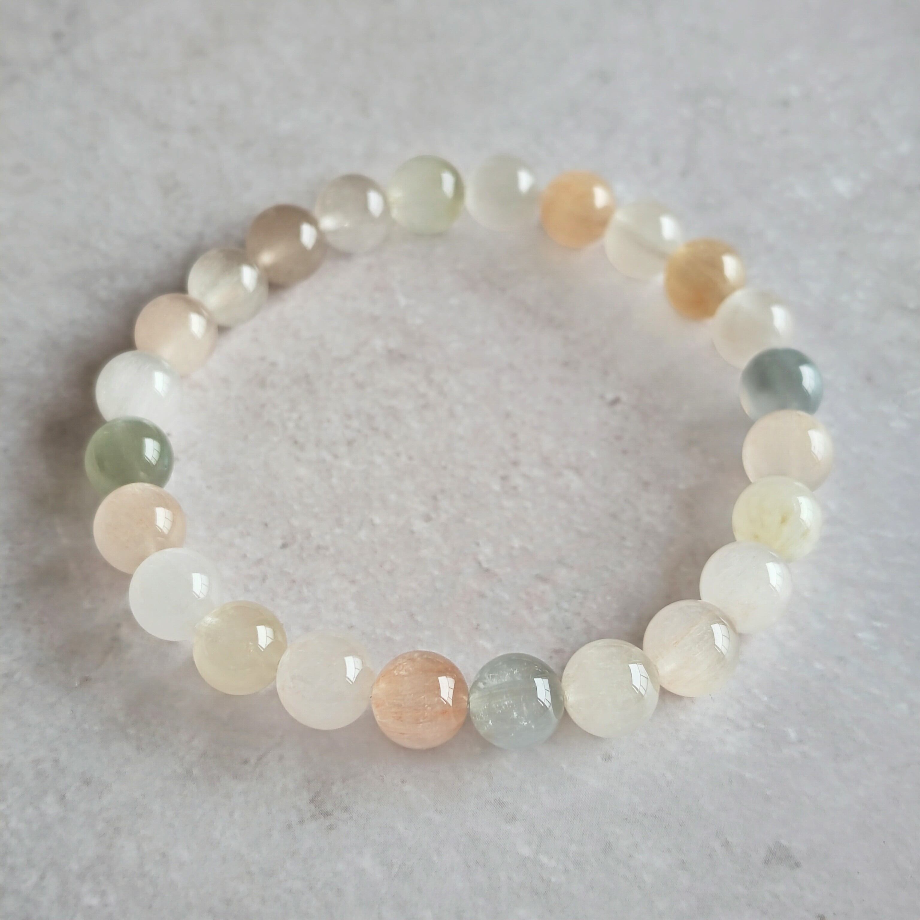 サゲニティッククォーツは、ピンクやホワイトやブルーが綺麗だなと思いますが、こちらのブレスレットは少し落ち着いたお色味でオトナのサゲさんですね!