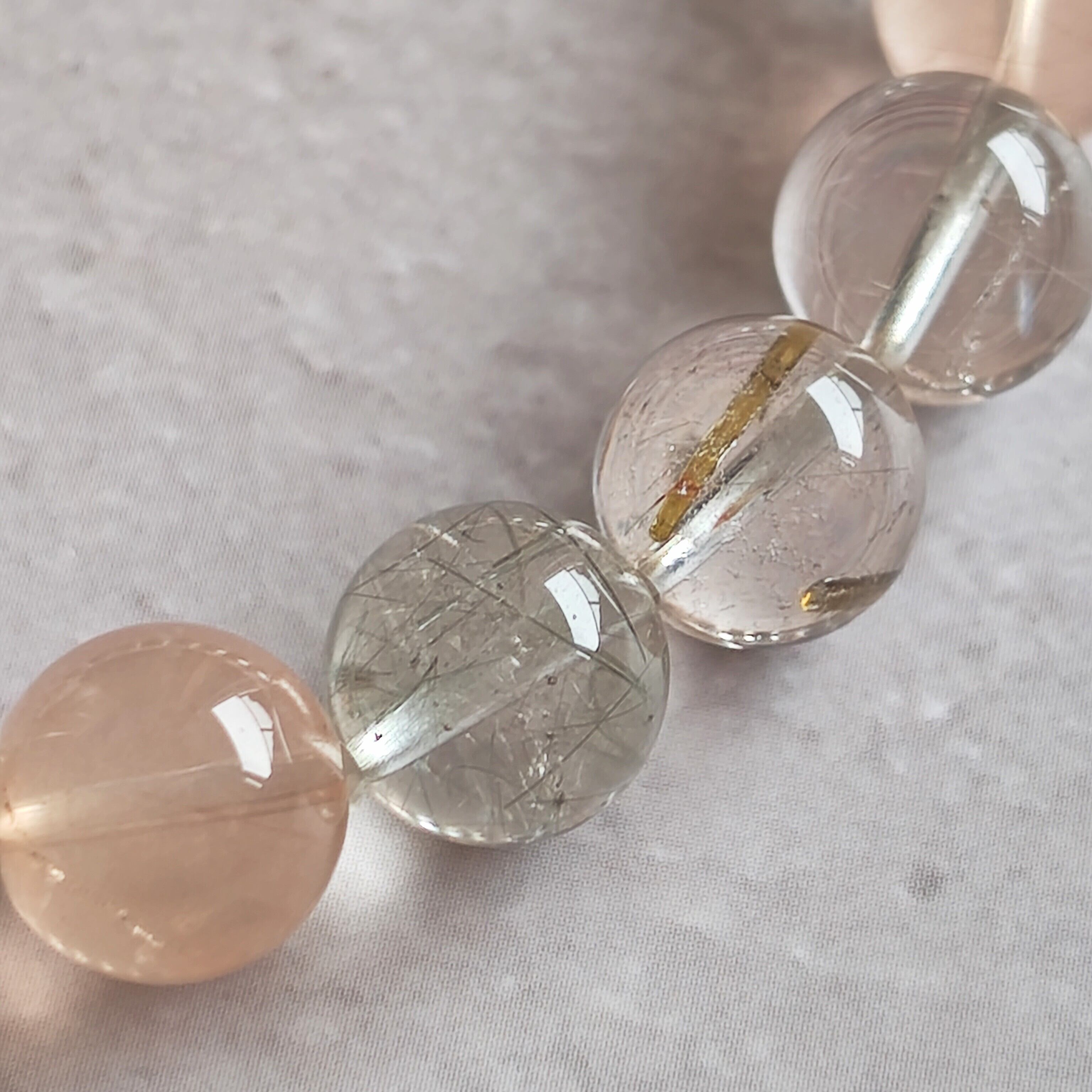 ルチルというと、金銀の針がみちみち入っていて、ギラギラした印象で。それはそれで効果抜群かもしれないけれど、ちょっと着けるのは躊躇してしまう…